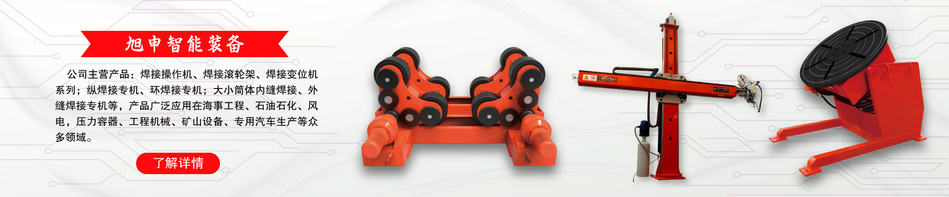 作為焊接自動化裝備與涂裝設備的專業(yè)制造商,旭申公司始終堅持“細節(jié)決定成敗,誠信鑄就未來”的經(jīng)營理念,做一流產(chǎn)品,創(chuàng)一流品牌。 旭申裝備將攜手旭申石化、旭申農(nóng)業(yè)等關(guān)聯(lián)公司一道,產(chǎn)業(yè)報國、造福社會,為新時代的裝備制造、節(jié)能環(huán)保做出應有的貢獻。